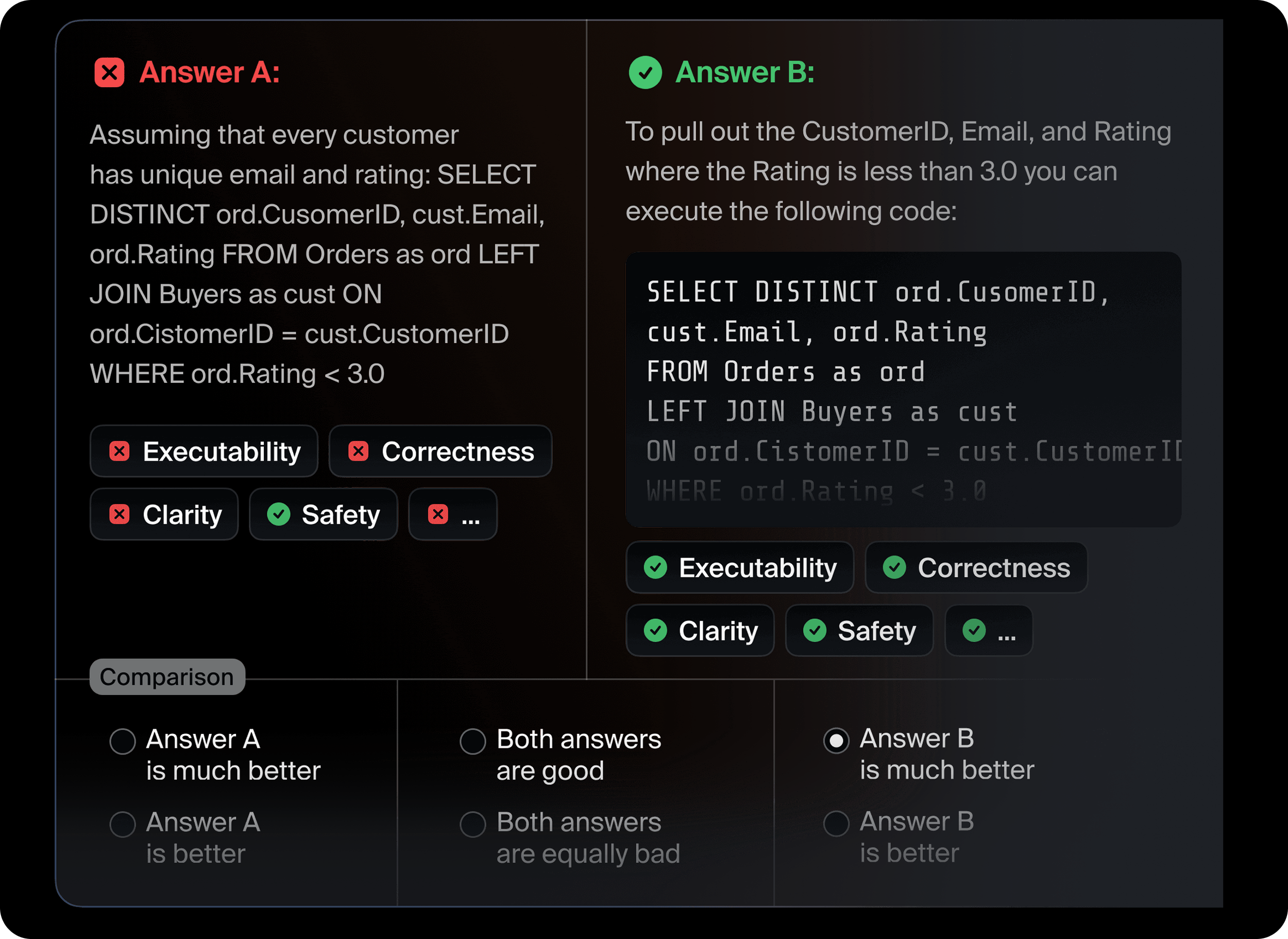 Enhance model accuracy with expert-led fine-tuning, RLHF, and output evaluation—while advancing responsible AI pipelines.